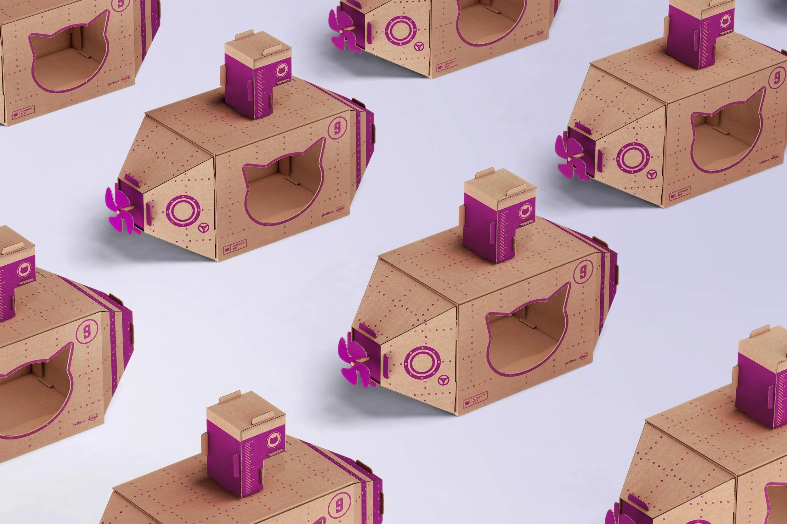 purchase of 40 single pouches. Each box will turn into a rocket, airplane or submarine. Tutors can follow on-box setup instructions and readily start the cat play.